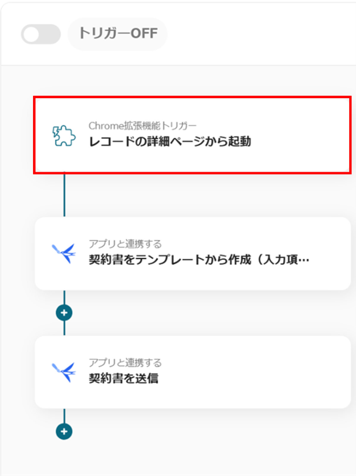 アプリトリガーの「レコードの詳細ページから起動」をクリックします。