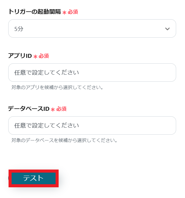 3.トリガーの起動間隔、アプリID、データベースIDを設定してください。