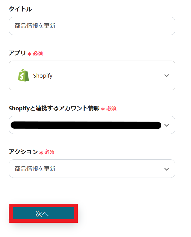 3.Shopifyで商品情報を更新するアクションの設定