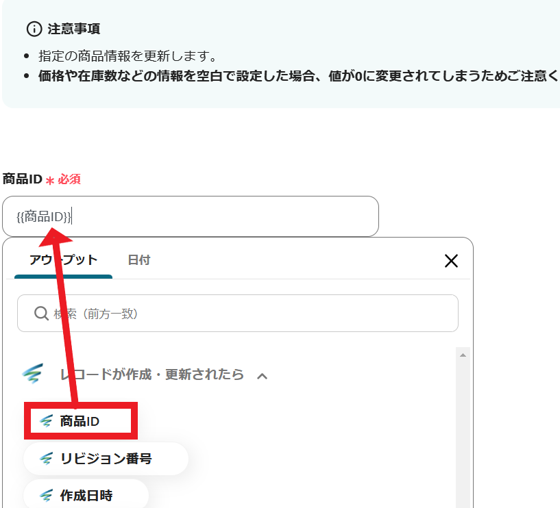 3.更新する商品情報を設定していきましょう。