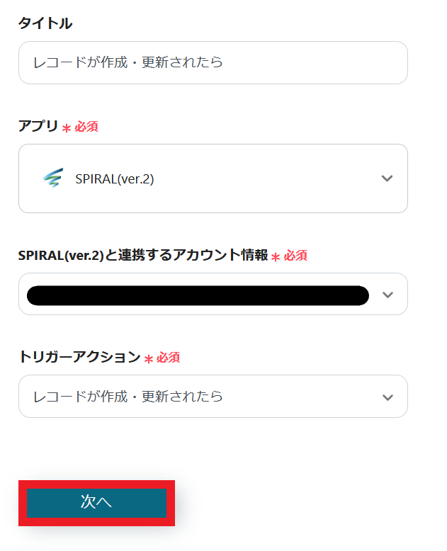2.SPIRALでレコードが作成・更新されたら起動するトリガーの設定