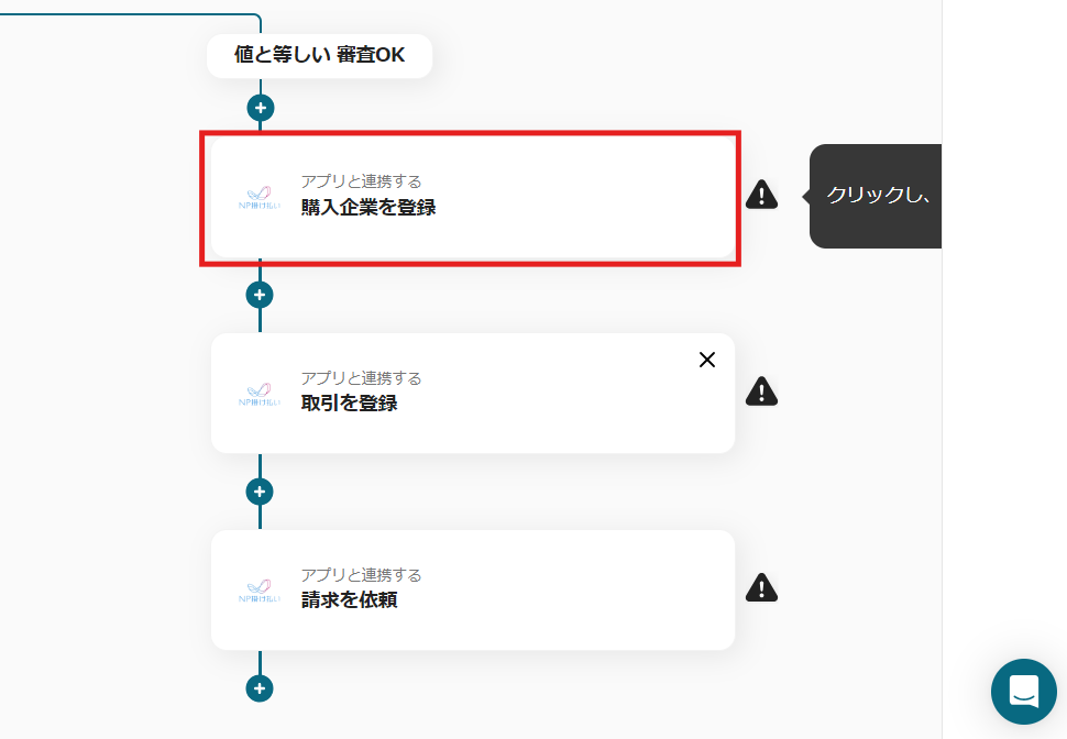1) フローに戻り、「アプリと連携する 購入企業を登録」のアイコンをクリックします。