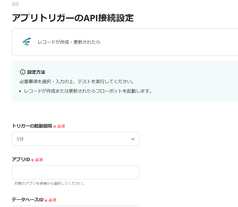 「アプリトリガー レコードが作成・更新されたら」をクリックします。