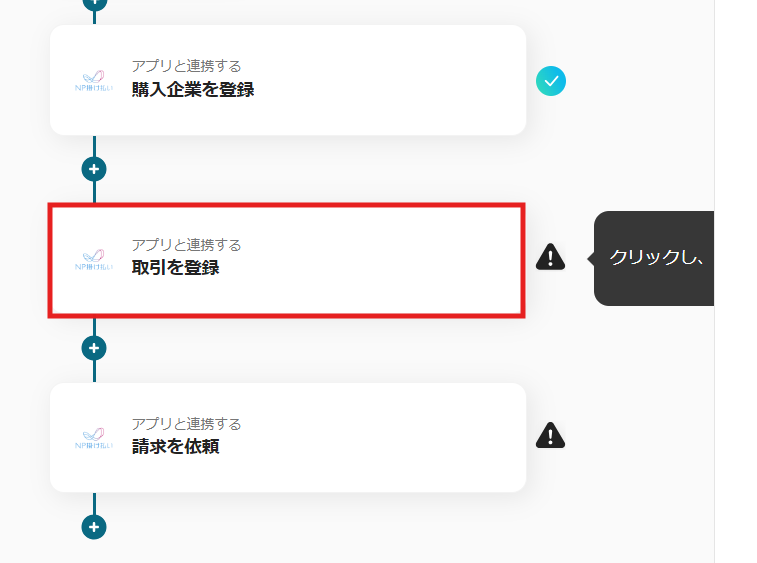 1) フローに戻り、「アプリと連携する 取引を登録」のアイコンをクリックします。