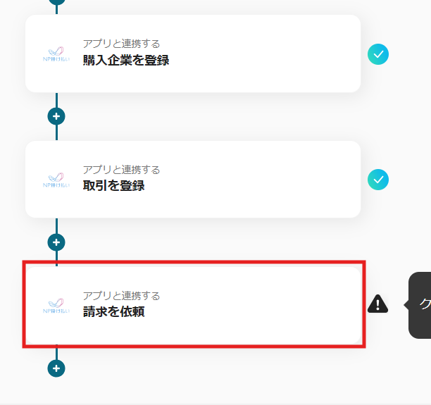 1) フローに戻り、「アプリと連携する 請求を依頼」のアイコンをクリックします。