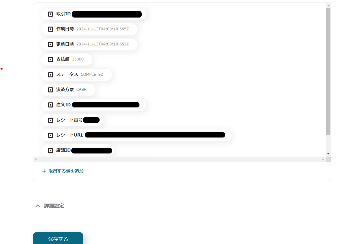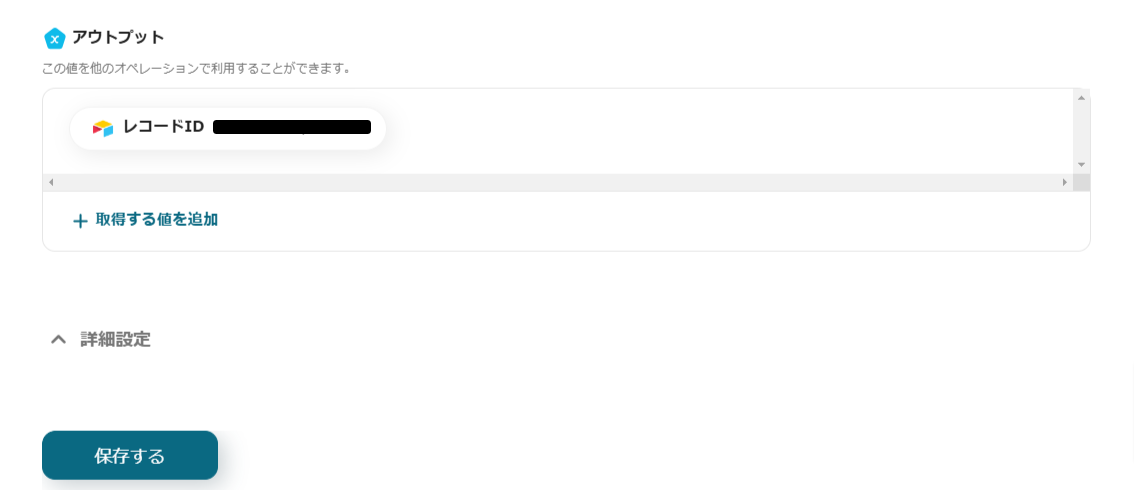 値が正しく取得できたら「保存する」をクリックして、アプリトリガーの設定は完了です。