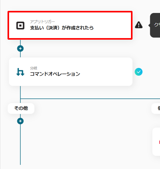 最初の設定は「支払い(決済)が作成されたら」です。