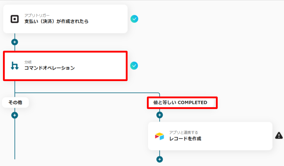 Squareでの決済が「COMPLETED(決済完了)」になっているかどうかを、このフローで確認するための設定です。