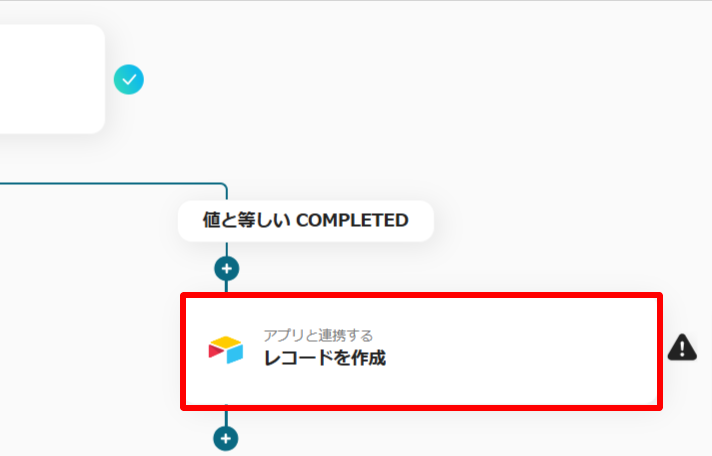 「支払い(決済)が作成されたら」のフローで取得した「ステータス」のアウトプットが「COMPLETED」になっているものを分岐させます。