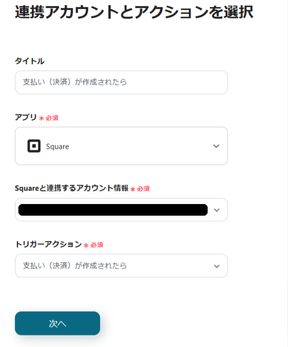 今回のフローは「Squareで決済が完了したらAirtableに登録する」というものです。