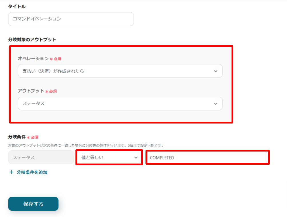 上記設定になっていたら「保存する」で分岐の設定は完了です。