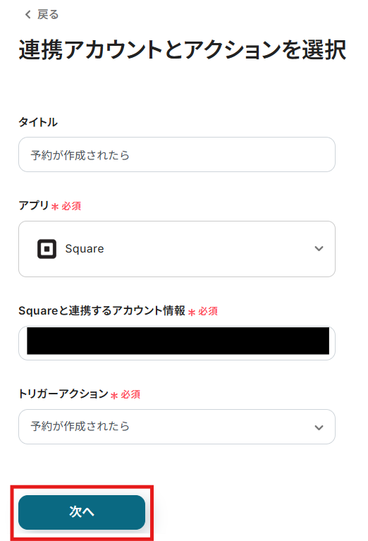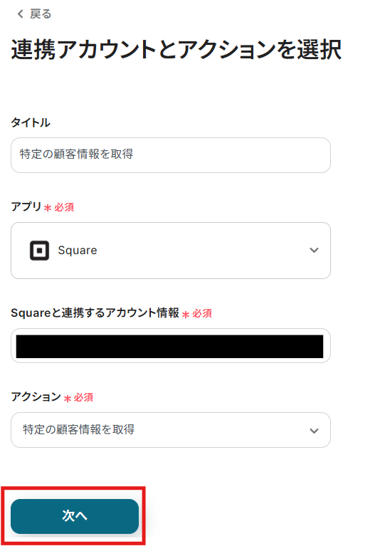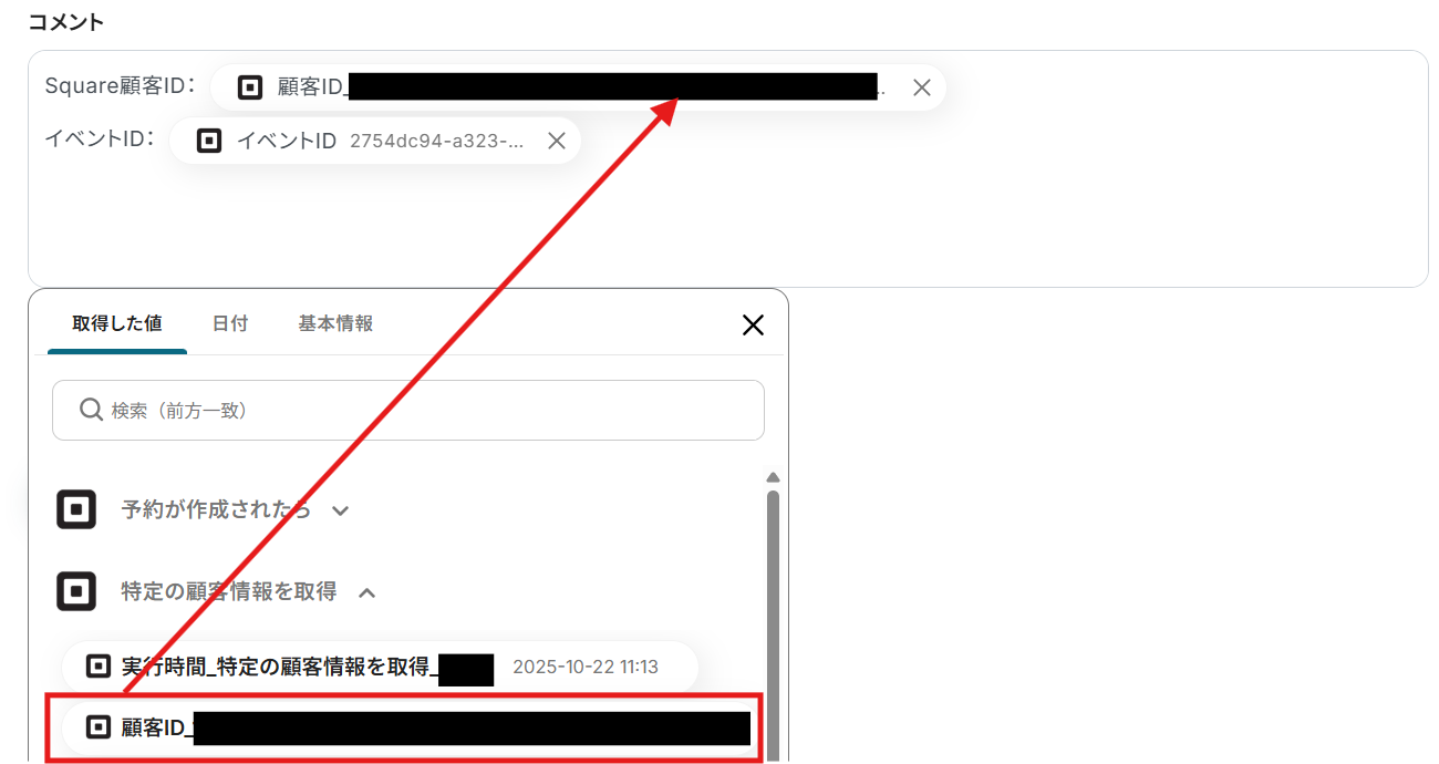次に、Squareで作成した予約の顧客情報を取得する設定を行います。