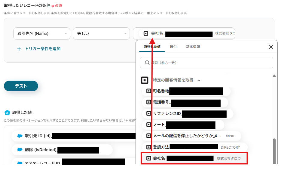 次に、取得したいレコードの条件を下記の内容で設定してください。