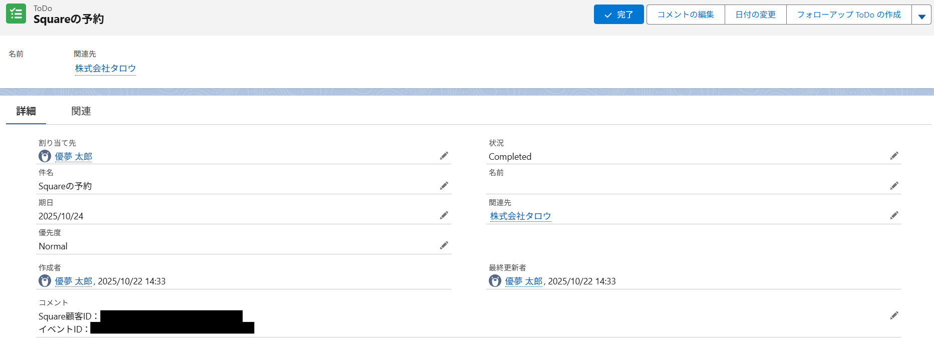 Squareで予約が作成されたら、Salesforceに活動履歴を登録する