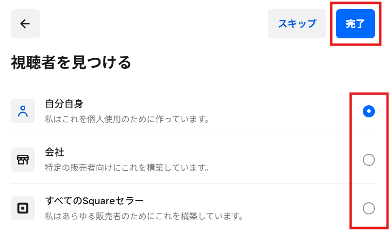 「自分自身」を選択して、「完了」をクリックしましょう。