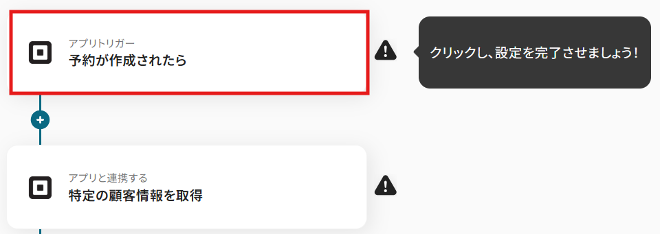 トリガーアクションは、「予約が作成されたら」のままで次に進みましょう!