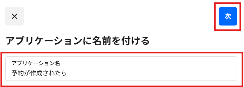Yoomの操作画面に戻り、コピーしたAPI参照名を貼り付けて「次へ」をクリックします。
