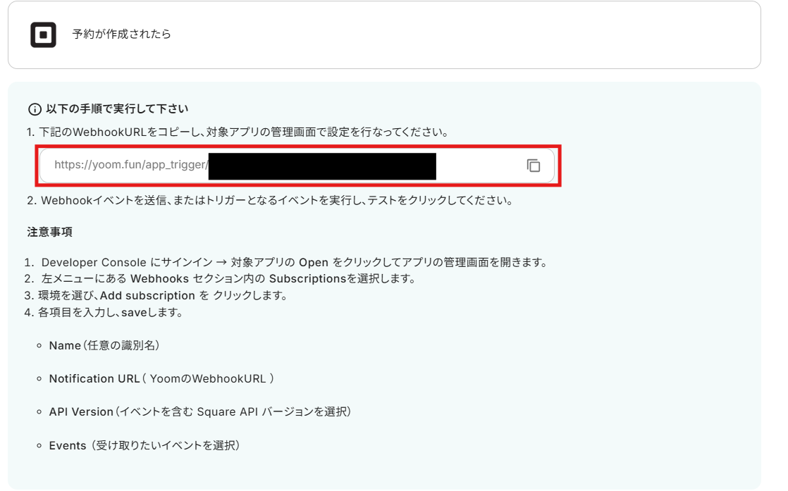 以下の手順を参考にして、SquareとYoomを連携してください。