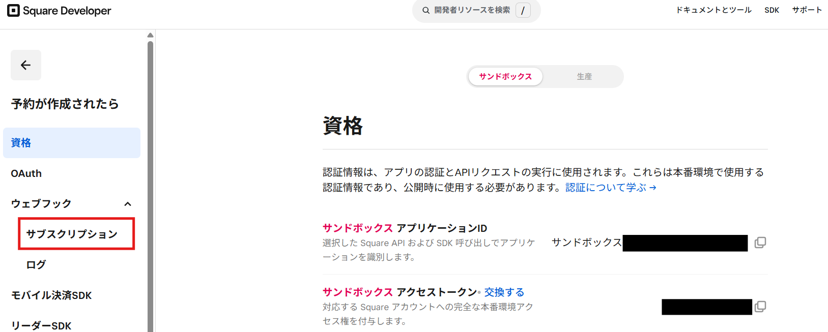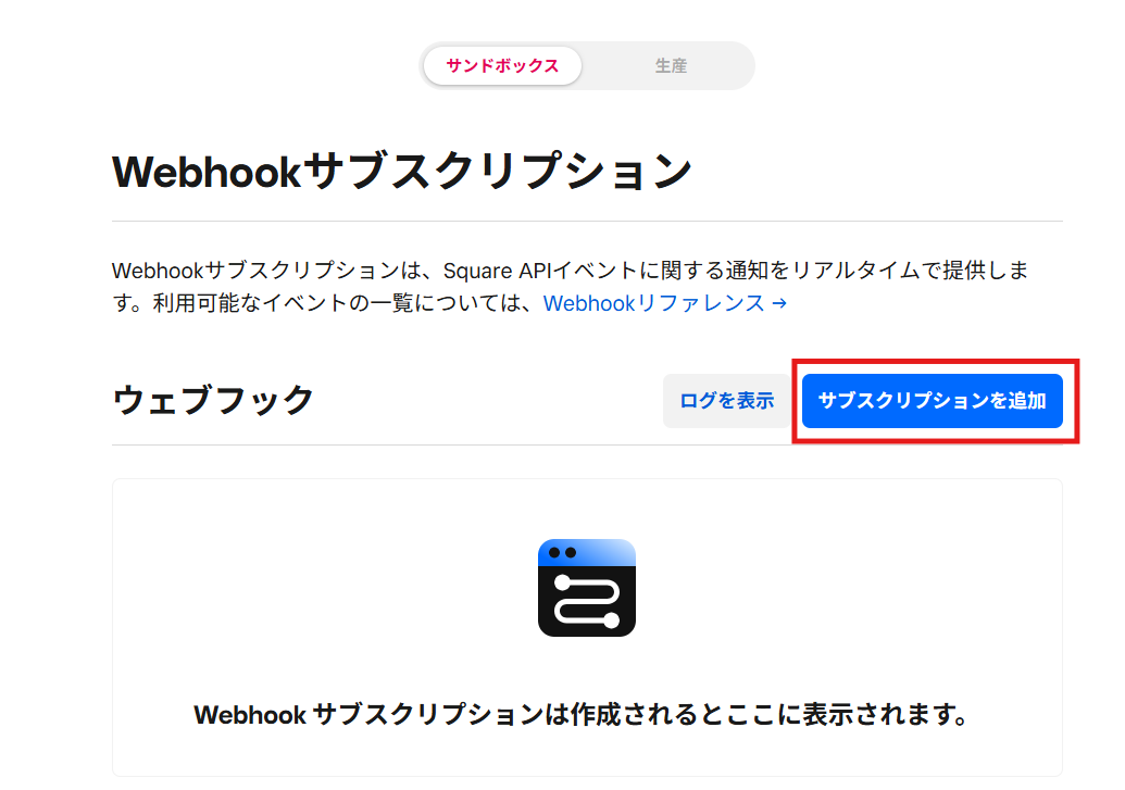 画面左側のメニューから「ウェブフック」→「サブスクリプション」を選択してください。