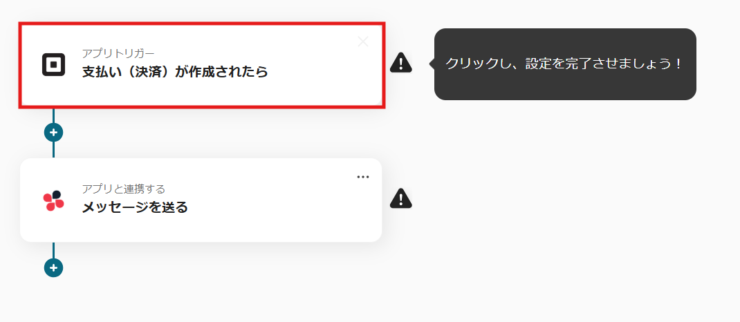 これで【Squareで支払いが発生したらChatworkに通知する】というフローが完成です。