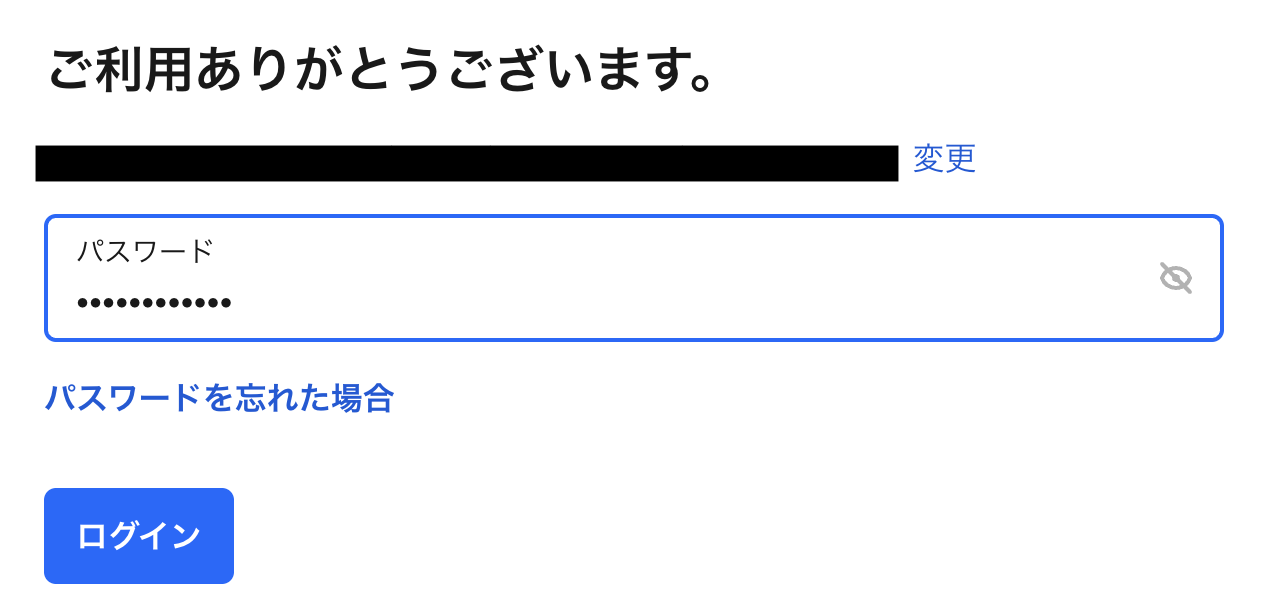 続いて、パスワードを入力後「ログイン」をクリックします。