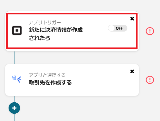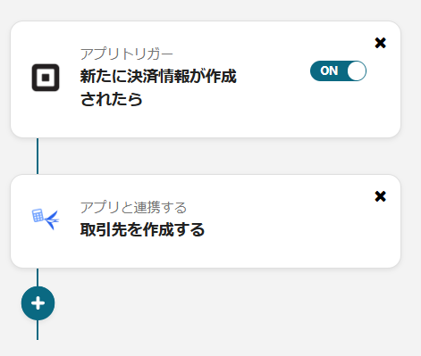 Squareで新しく決済の情報が作成されたら、freee会計の取引先を作成するフローです。