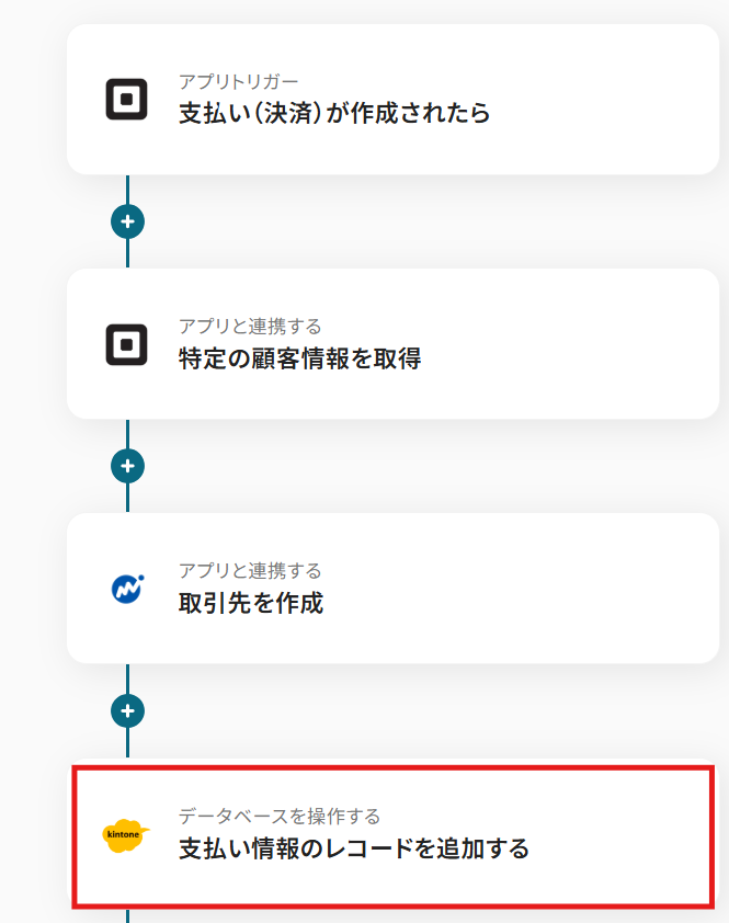 このプロセスを追加することで、Squareの支払い情報をkintoneに蓄積することができます。
