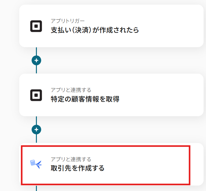 このフローでは、Squareで新たな決済が発生した際に、自動的にマネーフォワード クラウド会計に取引先が作成されます。この自動化によって、データの二重入力を防いでスムーズな会計処理が実現できるでしょう。