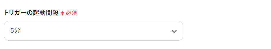 トリガーの起動間隔:5分、10分、15分、30分、60分の間隔から選べます。