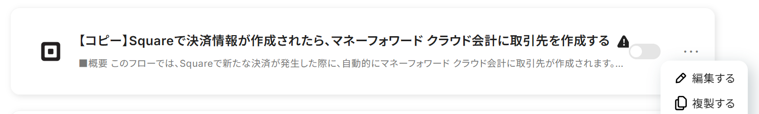 - トリガーボタンをONにして、Square・マネーフォワード クラウド会計の連携フローの動作確認をする。