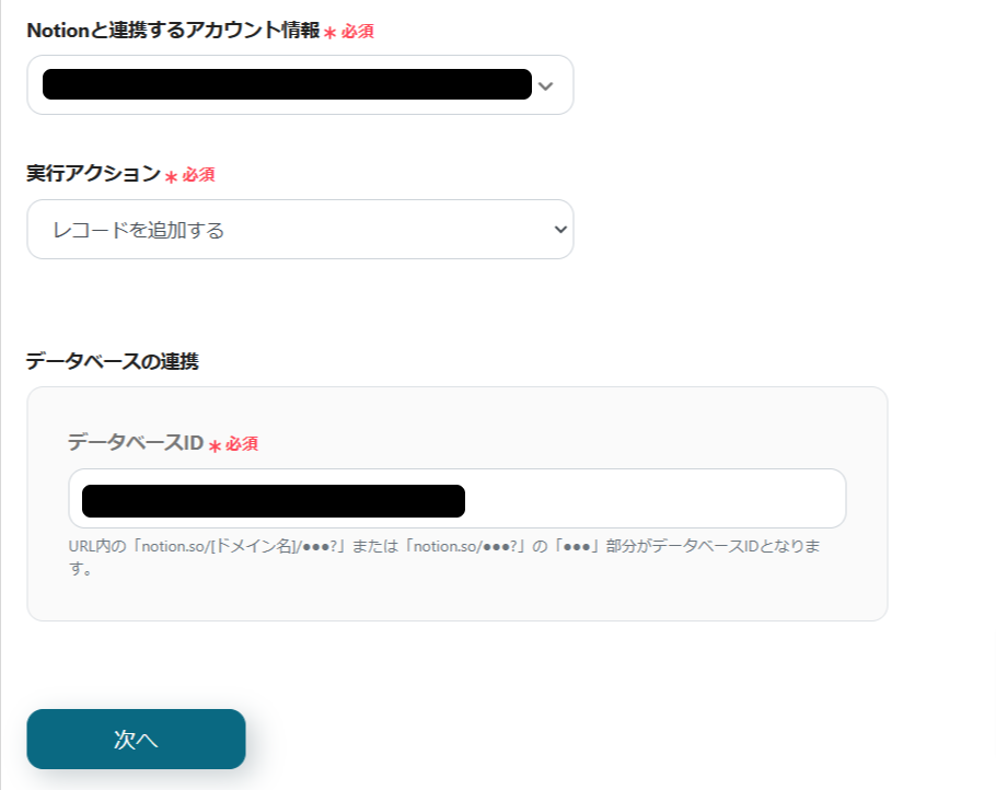 入力後「次へ」をクリックすると、データベースIDとの連携が確認できます。