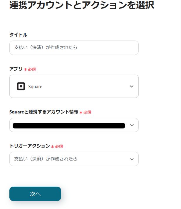 今回のフローは「Squareで決済が完了したらNotionに登録する」というものです。