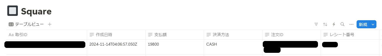 これで、Squareで決済完了後に、決済情報が自動でNotionに追加されるようになりました!
