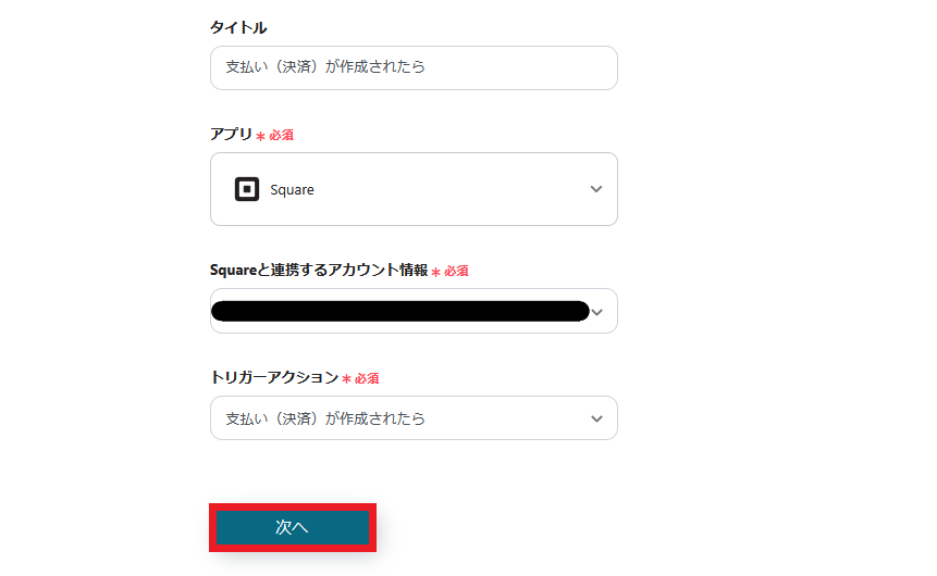 ・Squareで支払い(決済)が作成されたら起動するトリガーの設定