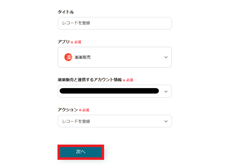 2.楽楽販売と連携するアカウント情報を入力します。