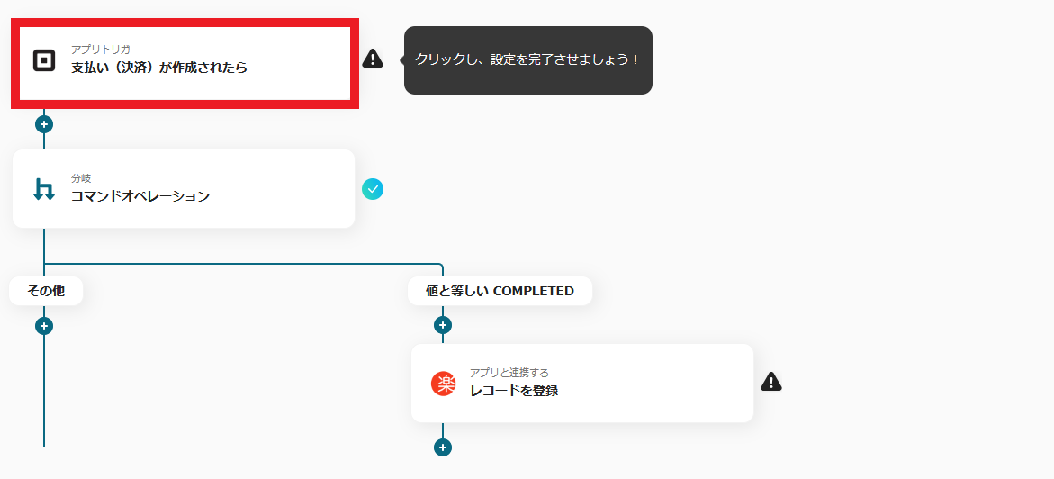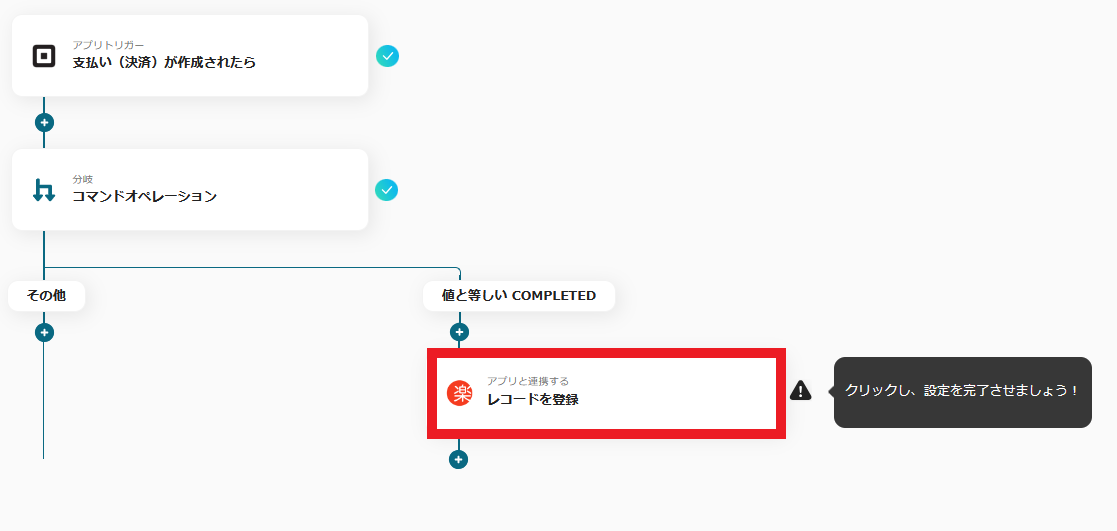 4.これで、【Squareで決済が完了したら楽楽販売に登録する】というフローが完成しました。