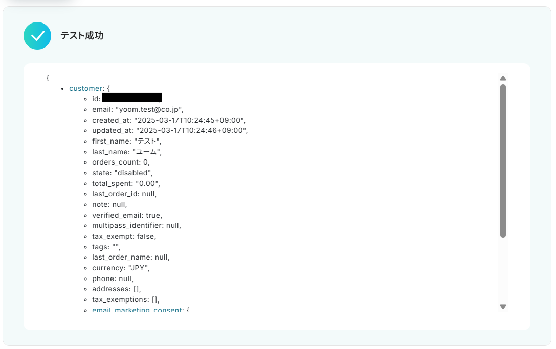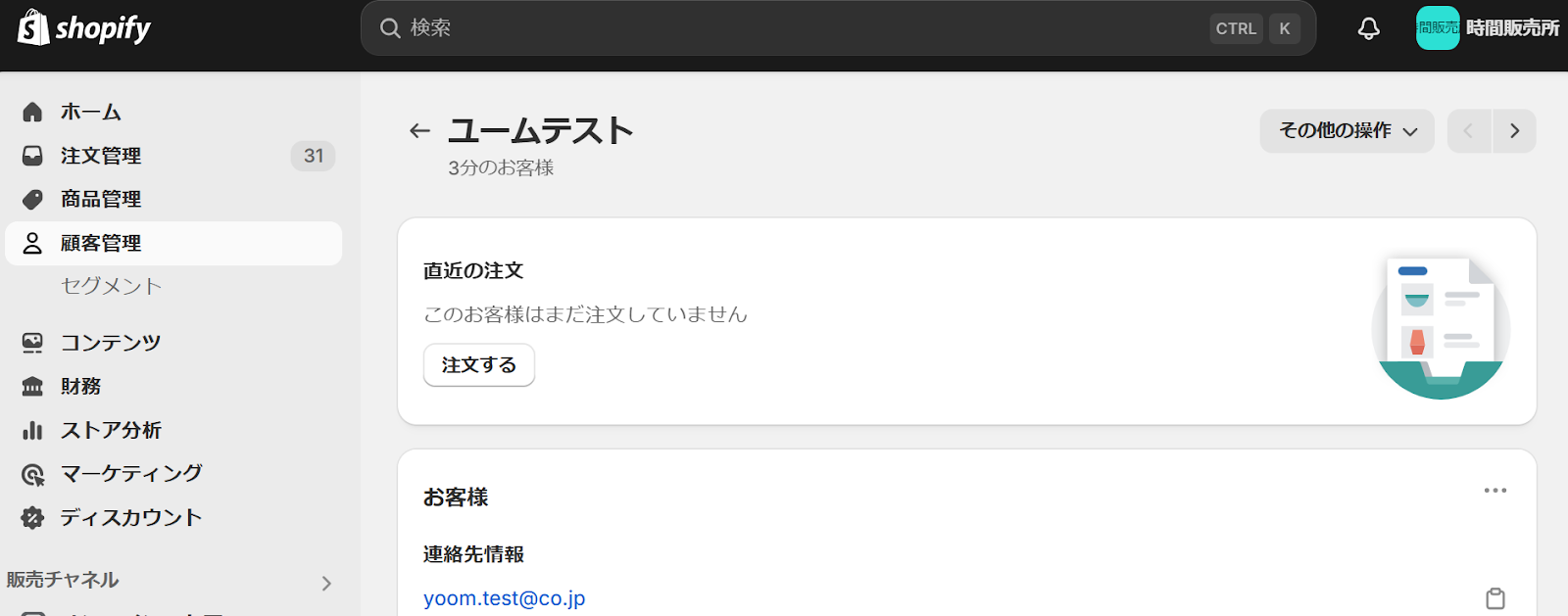 Shopifyの画面に移動すると、以下のように顧客情報が登録されているはずです!