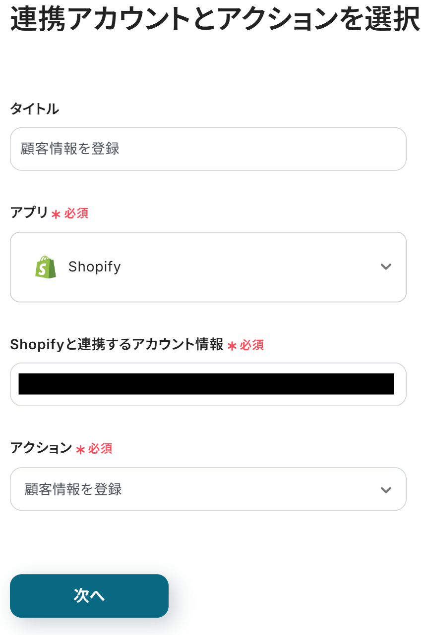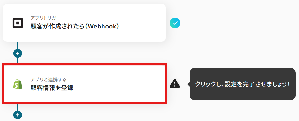 続いて、Shopifyする設定を行うため、「顧客情報を登録」をクリックします。