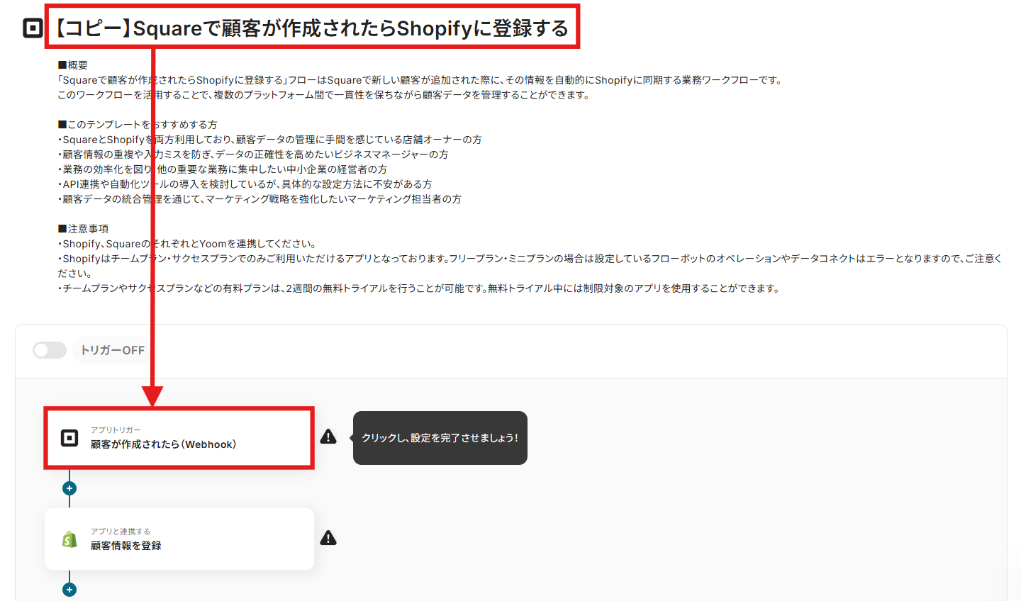 それでは、さっそくSquareとShopifyを連携したフローを作成してみましょう!