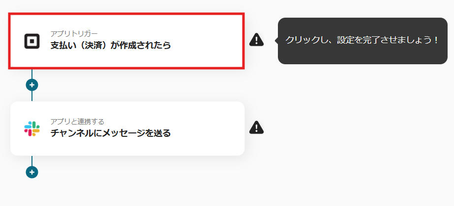 これで【Squareで支払いが発生したらSlackに通知する】というフローが完成です。