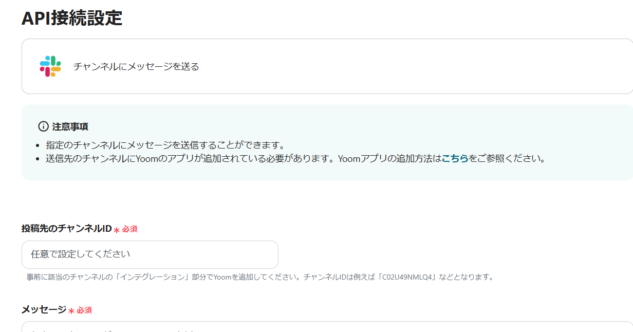 1) フローに戻り、「アプリと連携する チャンネルにメッセージを送る」のアイコンをクリックします。