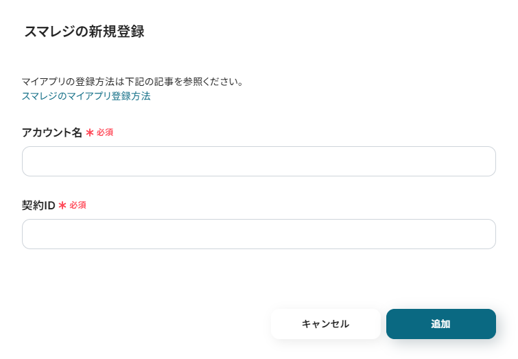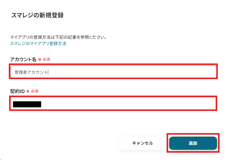 2.任意の「アカウント名」と連携したいアカウントの「契約ID」を入力します。