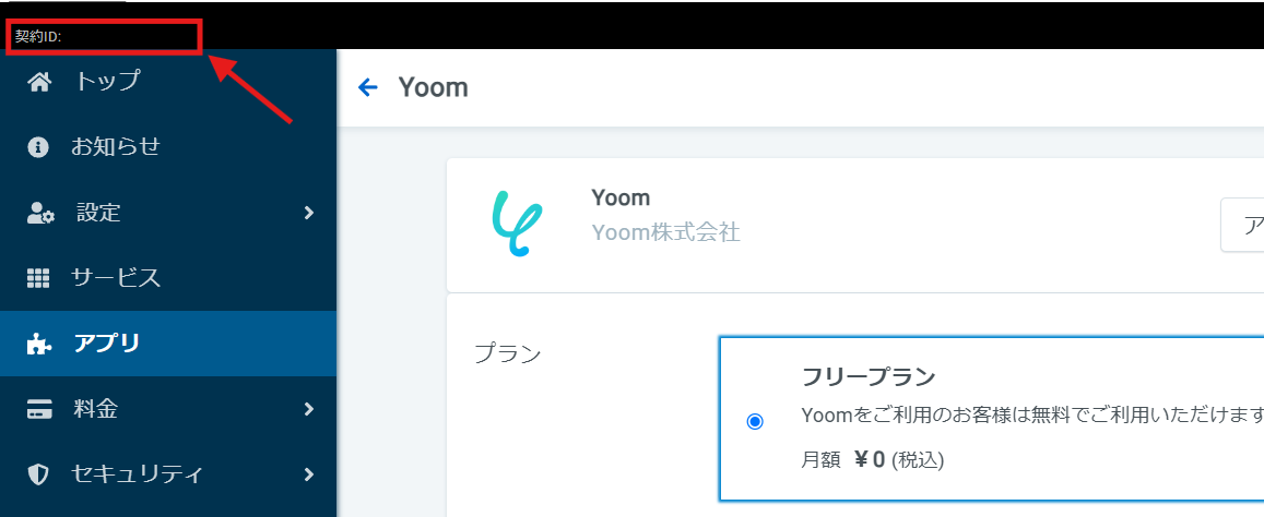 6.Yoomアプリをスマレジ内に追加したら、左上にある契約IDをコピーします。