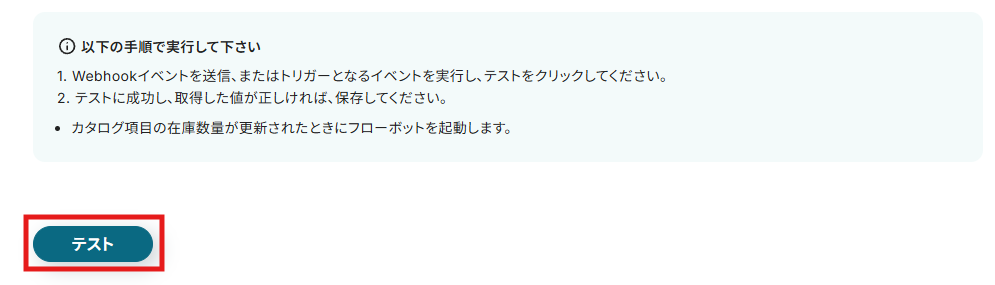 (4)Square内に登録されている商品の在庫数を更新し、「テスト」を実行します。
