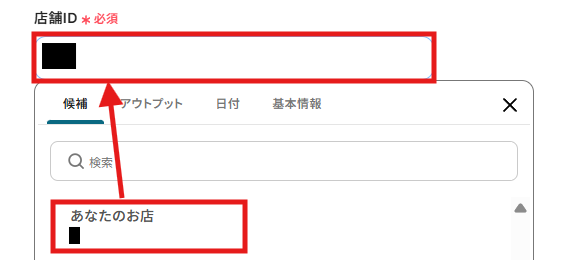対象の店舗名をクリックすることで、自動で店舗IDを入力することが可能です。