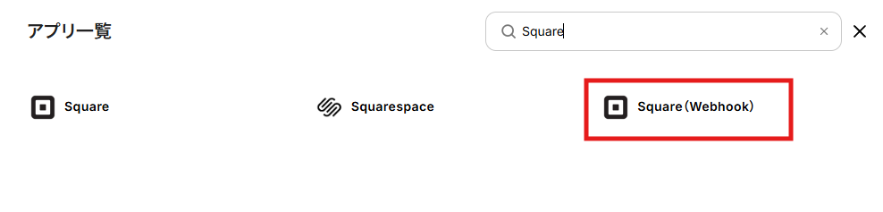 1.「Square」と検索し、アプリ一覧からSquare(Webhook)を選択します。