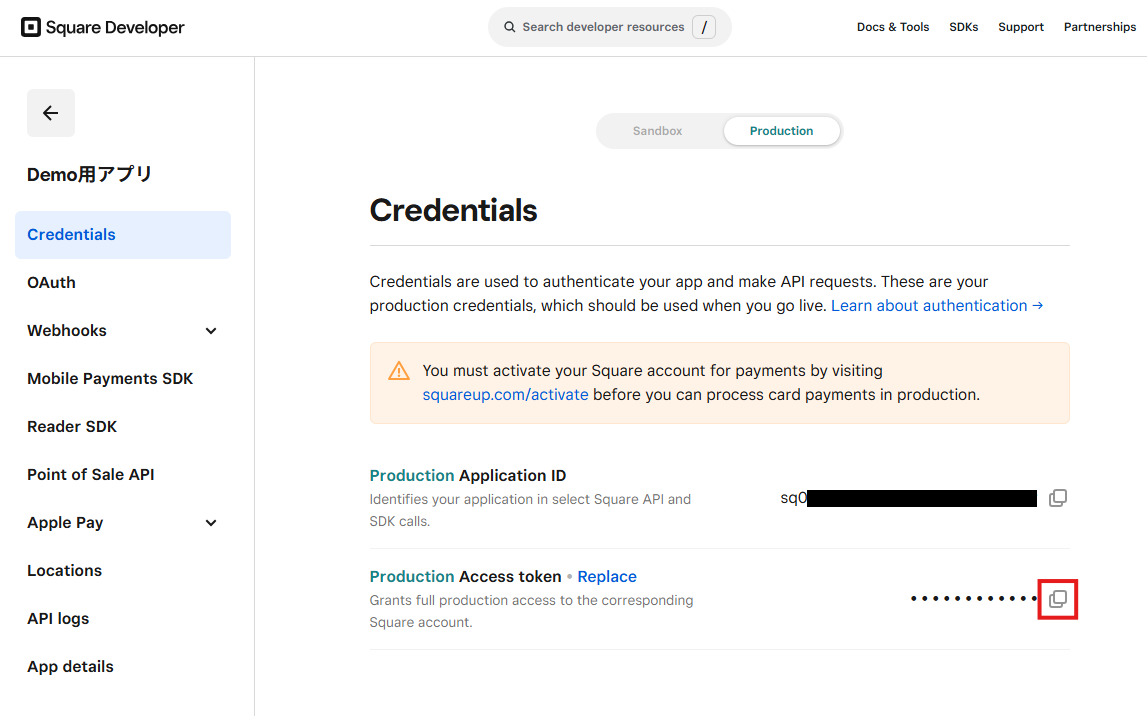 ※ 取得方法はSquareのドキュメントでも説明されています。