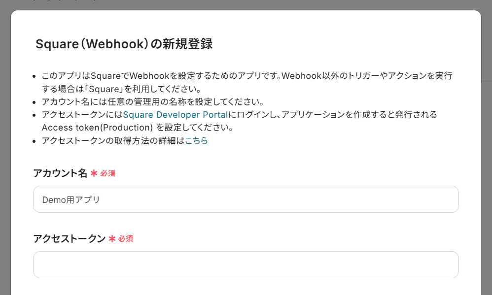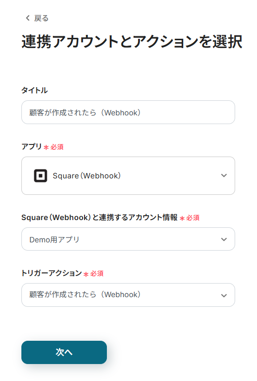※ SquareはWebhookを使用しないトリガーやアクションを実行する場合に使用します。