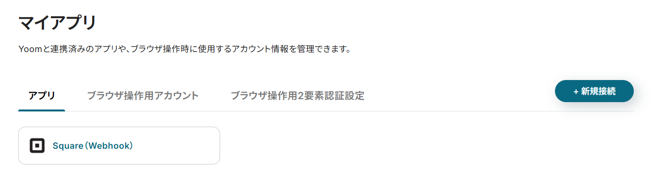 マイアプリ画面にSquare(Webhook)が追加されていることを確認してください。