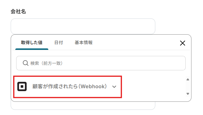- Squareの「顧客が作成されたら(Webhook)」をクリック。